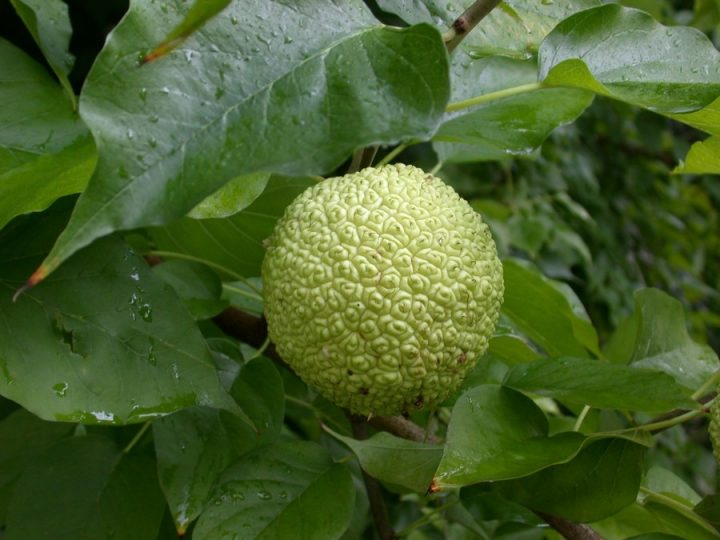 Listnatý strom původem z centrálního jihu Spojených států amerických je velmi ceněn jako okrasná rostlina především pro estetickou hodnotu svých velkých, ale nejedlých plodů, které vypadají jako „koule“ vánočních ozdob o průměru 10 až 15 cm, zpočátku zelené barvy, ale po dozrání získávají oranžovou barvu.